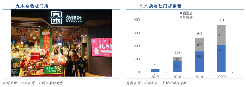 經典案例:根據公司官網、長城證券研究所等綜合資訊表明,基于晨光文 具的主業優勢,九木雜物社主銷文創類雜貨,定位較為獨特。近年來九木通過自營+加盟 的模式快速擴張,2019 年門店數量達 361 間,其中單間門店年 GMV 接近 300 萬元,收 入達 4.6 億元。