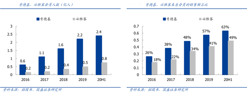 經典案例:根據公司招股書、國盛證券研究所等綜合資訊表明,百勝公司旗下的肯德基是最早進入國內的西式餐飲品牌,其在“西式炸雞”上實現了對消費者的心智占領,近年來不斷通過營銷戰略與建立會員體系進一步提高用戶粘性,維護品牌知名度,目前公司會員人數已超 2.65 億人。