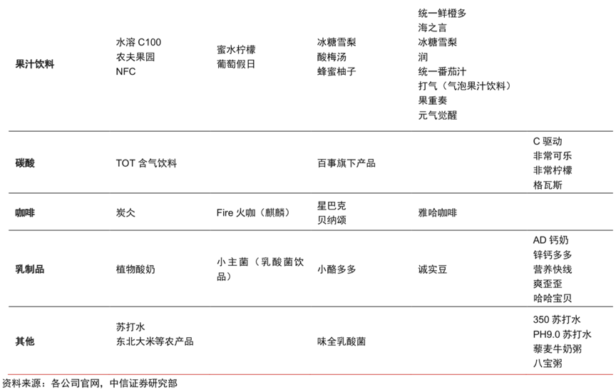 經典案例:根據各公司官網、中信證券研究部等綜合資訊表明,農夫山泉以包裝飲用水為基本盤,在飲料布局中選擇看好的細分品類進行戰略性布局,由此決定其“深耕單品”的發展戰略。比如,其2004 年即推出尖叫,定位青少年消費者,2019 年公司在原有產品基礎上推出專為運動設計的白桃味和青芒 味,2019 年尖叫銷售規模同比增長10.2%至 26.7 億元。