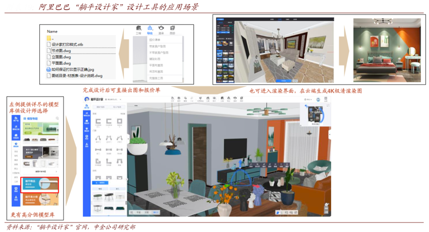 經(jīng)典案例:根據(jù)“躺平設(shè)計(jì)家”官網(wǎng)、中金公司研究部等綜合資訊表明,2019 年 9 月,阿里巴巴 5 億元戰(zhàn)略投資三維家,由三維家賦能“躺平”平臺(tái)。阿里巴巴“躺平”平臺(tái)的目標(biāo)是為品牌提供更加優(yōu)秀的制造能力和營(yíng)銷(xiāo)能力、讓品牌的設(shè)計(jì)成為由設(shè)計(jì)師和消費(fèi)者驅(qū)動(dòng)的 C2M 式設(shè)計(jì)。于設(shè)計(jì)師,“躺平”希望為設(shè)計(jì)師提供優(yōu)秀的設(shè)計(jì)工具、免費(fèi)的渲染服務(wù)、成熟的分傭體系和完整的供應(yīng)鏈。設(shè)計(jì)師將能夠在“躺平”的設(shè)計(jì)后臺(tái) 看到制造商的工藝能力,保證設(shè)計(jì)可以直接成為產(chǎn)品,“所見(jiàn)即所得”。