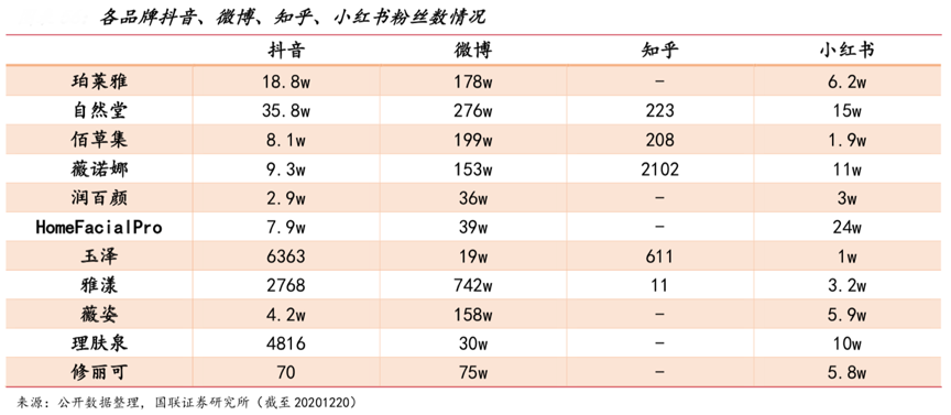 經(jīng)典案例:根據(jù)市場(chǎng)公開數(shù)據(jù)、國(guó)聯(lián)證券研究所等綜合資訊表明,貝泰妮公司堅(jiān)持品牌推廣戰(zhàn)略,旗下“薇諾娜”品牌在消費(fèi)者群體中已經(jīng)具備了較高的知名度。截至目前,其薇諾娜官方旗艦店(天貓)已積累了 600 多萬粉絲,其在抖音、微博、知乎、小紅書上營(yíng)銷能力較為均衡,較國(guó)外敏感肌護(hù)膚品牌雅漾、薇姿、理膚泉、修麗可等在各大社交平臺(tái)的營(yíng)銷能力更為綜合,對(duì)于新興平臺(tái)的營(yíng)銷布局反映速度更快。