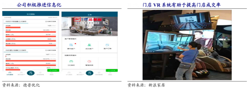 經典案例:根據德普優化、新浪家居、開源證券研究所等綜合資訊表明,敏華控股公司近年強化對門店的數字化建設,近年積極在門店推行 CRM 系統和 VR 系統。經銷商通過 CRM 系統可以實時分析門店有效體驗數、轉化率和客單價這三個指標,從而經銷商可以有針對性地提升門店經營效率。VR 系統則方便消費者根據自家戶型和裝修風格,電子化立體展示沙發購買效果,促進消費者購買,從而提高客流有效轉化率。