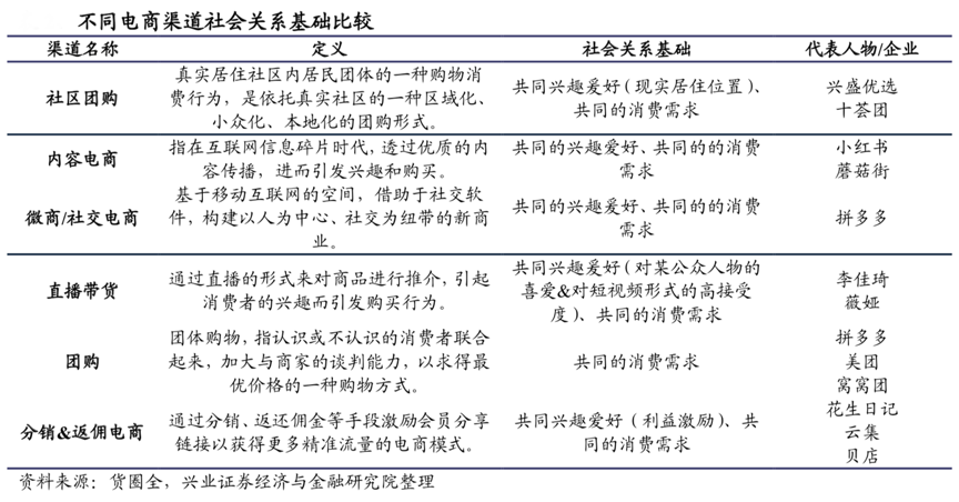 經典案例:根據貨圈全、興業(yè)證券經濟與金融研究院等綜合資訊表明,不同營銷方式基于的社會關系基礎不同,社區(qū)團購本質上依靠的是熟人營銷的優(yōu)勢,相對于內容營銷與直播營銷來說,顧客天然具有更高的信任度,有利于促進消費行為的發(fā)生。