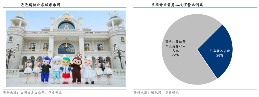 經典案例:根據公司官方公眾號、騰訊網、華泰研究等綜合資訊表明,泡泡瑪特首家樂園開業后二次消費比例高,互動體驗助力 IP 生態健全。其首家樂園于 2023 年 9 月 26 日開業,首月入園客流達 10 萬人次,門票以外的二次消費 (如餐飲、商品零售等)占比達 72%。