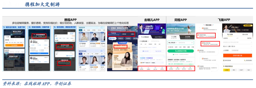 經典案例:根據在線旅游APP、華創證券等綜合資訊表明,度假業務上,2023攜程私家團 GMV 同比 2019 年增長 370%,其中 2~9 人的小團 GMV 同比 2019 年增長 100%,國內私家團的占比提升了 4 倍(當年底占比已提升到 10%),海外則提升了 1 倍。相比較下,攜程定制游產品相較其他平臺更為個性化和人性化,依托完整的大交通和大住宿的旅游生態圈,定制產品有更為明顯的優勢。