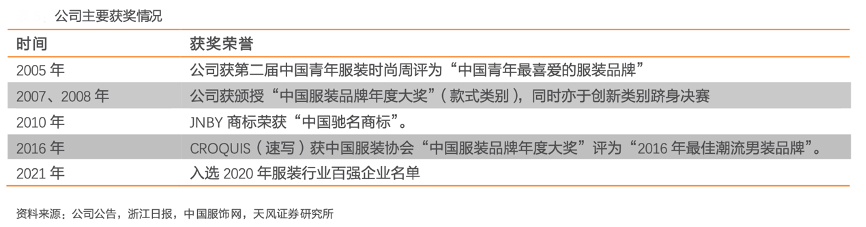 經(jīng)典案例:根據(jù)公司公告、浙江日報、中國服飾網(wǎng)、天風(fēng)證券研究所等綜合資訊表明,江南布衣品牌理念為“自然、自我”,公司的核心價值為“更好設(shè)計、更好生活”,致力于打造中國最好的設(shè)計平臺。品 牌 多 次 獲 獎, 倍受 消費者 認(rèn)可。