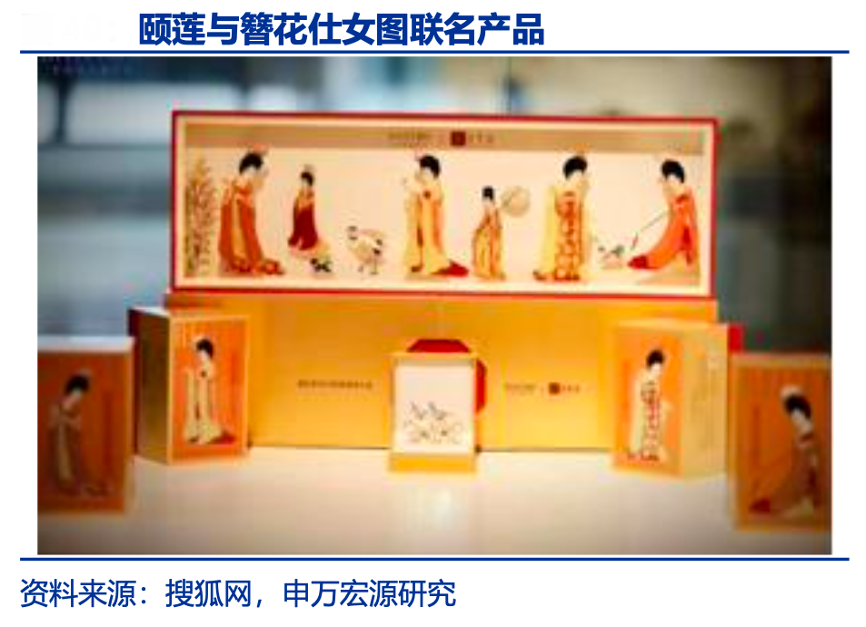 經典案例:根據搜狐網、申萬宏源研究等綜合資訊表明,頤蓮將產品功效與品牌審美和文化內涵 相結合,品牌與《頤和仙境》、榮寶齋《簪花仕女圖》等文化項目合作,傳遞東方美學特征和品牌文化。2023 年,頤蓮與千年瓷都景德鎮攜手打造了第一款私模產品——安肌精華,將品牌 20 年國貨品牌的文化底蘊與景德鎮的匠心精神巧妙融合。